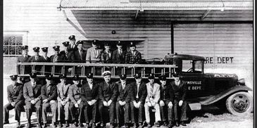 Aumsville's first firetruck and the volunteer fire fighters